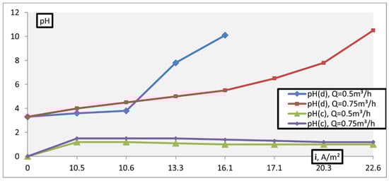 The results obtained during the electrodialysis treatment of an acidic initial (working) solution with pH >3.3 are shown in Figure 10.