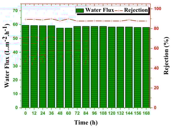 3.6. Long-Term Stability of NF-PANZr Membrane