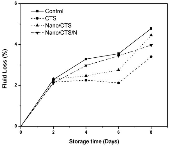 Effects of coating treatments on fluid loss for cantaloupes during storage at 4 °C for 8 days. Data are mean ± SD, n = 3.