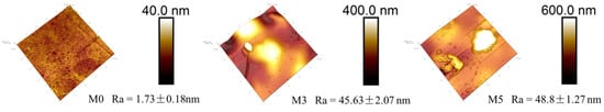 Atomic force microscope (AFM) images of the M0, M3, and M5 membranes.