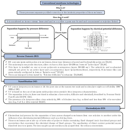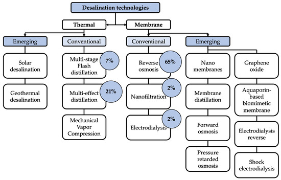 Desalination technologies are classified as conventional or emerging, depending on the scientific and technical development level, and their presence in the market. According to the definition proposed by Day et al. [