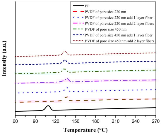 Comparison of exothermic peaks of PP separator and PVDF fiber-membranes.