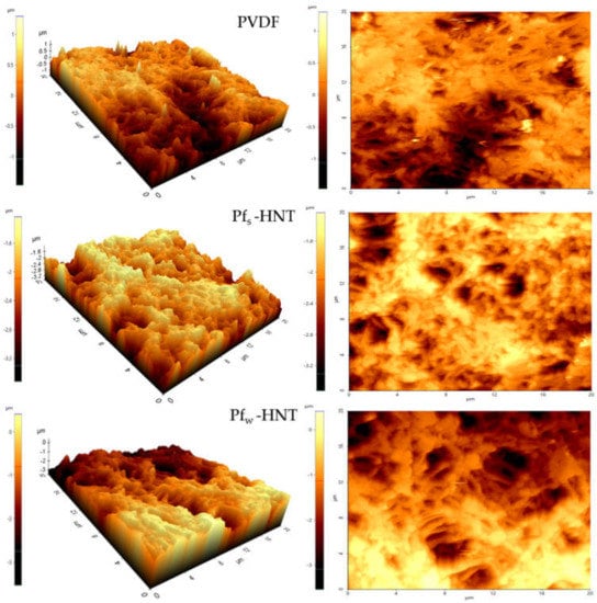 Comparison of the surface roughness between the neat PVDF, Pfs-HNT Pfw-HNT membranes.
