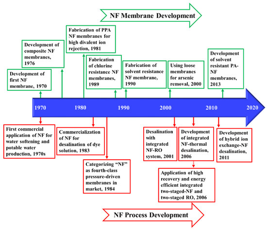Timeline of the key developments of NF process [142,143,144] and NF membranes [141,145,146].