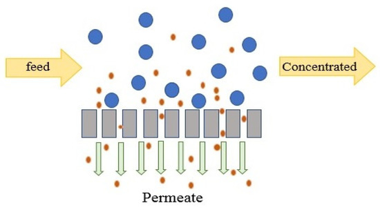 NF is normally operated in tangential flow filtration (TFF) mode, which minimizes CP in the channel [151]. In TFF mode, feed water flows along the membrane and the permeate stream passes through the membranes. In NF, the membranes are not capable of totally removing all components and particles smaller than 0.5 nm may pass through the membranes to the permeate side, as presented in Figure 4. Hence, as opposed to RO, NF permeate may require further desalination. NF is operated under either constant TMP or constant flux. Constant TMP is a static mode that can be used to evaluate the permeability of clean membranes and estimate the capacity of the unit. Constant flux is a dynamic mode which changes pressure in response to fouling and is mostly used for water with high fouling potential to assure a fixed permeate flux as the TMP increases [152]. The optimum permeate flux is a sustainable flux beyond which fouling rate significantly increases [152].