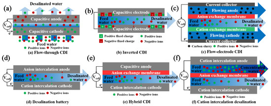 - Zhang, C.; He, D.; Ma, J.; Tang, W.; Waite, T.D. Comparison of faradaic reactions in flow-through and flow-by capacitive deionization (CDI) systems. Electrochim. Acta 2019, 299, 727–735. [Google Scholar] [CrossRef]