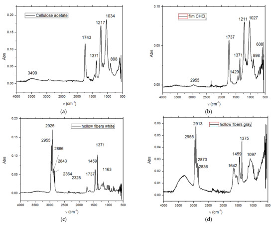 The polypropylene support fibers, impregnated with the cellulose acetate solution, were placed suspended in a vacuum oven and evaporated at 45 °C for 4 h. After this interval, they were placed in a desiccator for cooling and then were weighed. The operations were repeated every 20 min until a constant mass was obtained.