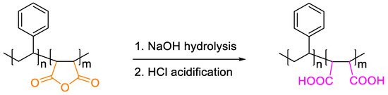 Base hydrolysis and acidification of anhydride bonds in poly(styrene-co-maleic anhydride).