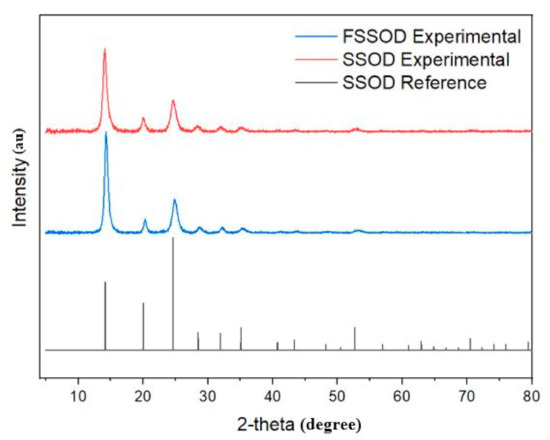 XRD pattern of SSOD and fSSOD compared to the XRD pattern from DIFFRAC EVA database.