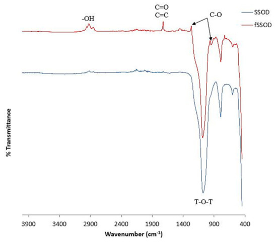 FTIR spectra of SSOD and fSSOD nanoparticles.