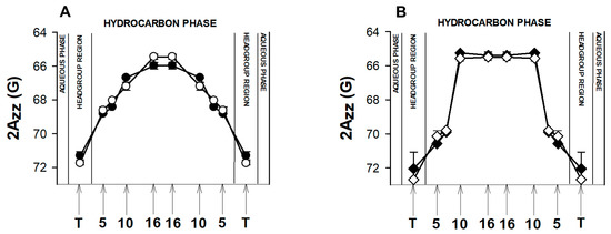 - Kusumi, A.; Subczynski, W.K.; Pasenkiewicz-Gierula, M.; Hyde, J.S.; Merkle, H. Spin-label studies on phosphatidylcholine-cholesterol membranes: Effects of alkyl chain length and unsaturation in the fluid phase. Biochim. Biophys. Acta 1986, 854, 307–317. [Google Scholar] [CrossRef]