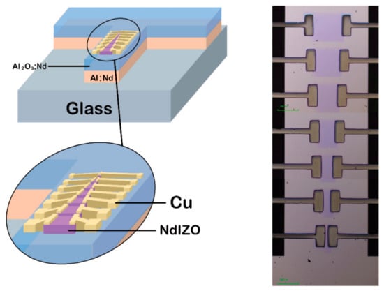 - Song, E.; Lan, L.; Xiao, P.; Lin, Z.; Sun, S.; Li, Y.; Song, W.; Gao, P.; Peng, J. Thin-Film Transistors With Neodymium-Incorporated Indium–Zinc-Oxide Semiconductors. IEEE Trans. Electron. Devices 2016, 63, 1916–1920. [Google Scholar] [CrossRef]