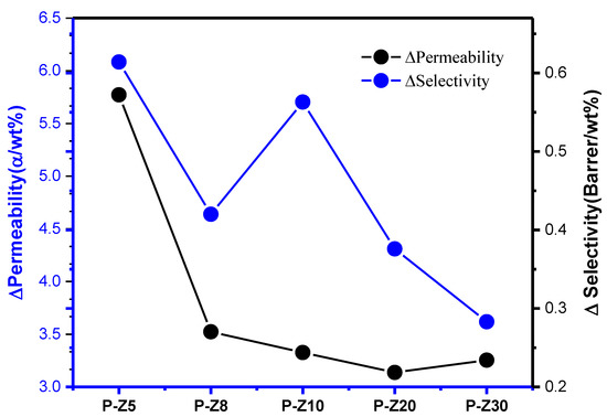 Pebax/n wt% ZIF-8 MMMs can improve the performance ratio per wt%.