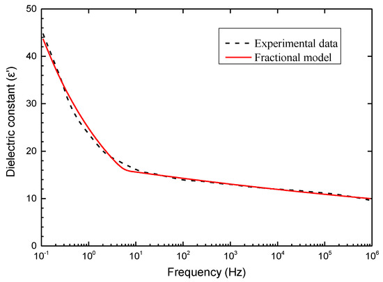 Comparison between the fractional order dielectric model and the dielectric constant of PVDF-HFP/NKBT composites.