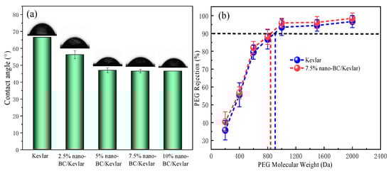 3.2.4. Water Contact Angle and MWCO of the Membrane