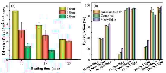 | Membrane | Dye | Dye Rejection (%) | Flux (L/(m2·h·bar)) | Reference |