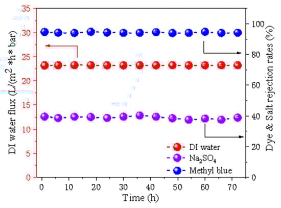 3.2.6. Long-Term Stability Test and Its Comparison to Other Reported Membranes