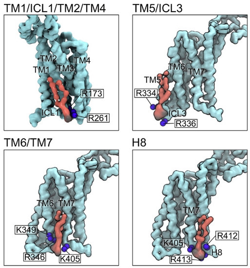 - Sejdiu, B.I.; Tieleman, D.P. Lipid-protein interactions are a unique property and defining feature of G protein-coupled receptors. Biophys. J. 2020, 118, 1887–1900. [Google Scholar] [CrossRef]