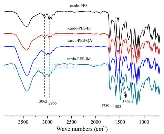 2.6. Synthesis of Cardo-PES-QA and Cardo-PES-IM