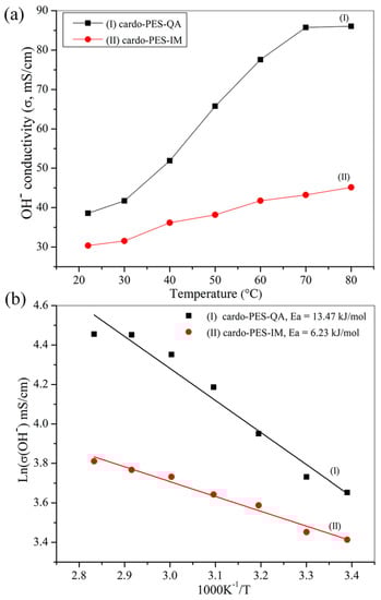 | Polymer | IECW,theo (mequiv./g) | WUW (%) | λ | Δl (%) | Δt (%) | σ (mS/cm) | Ea a (KJ/mol) | ||