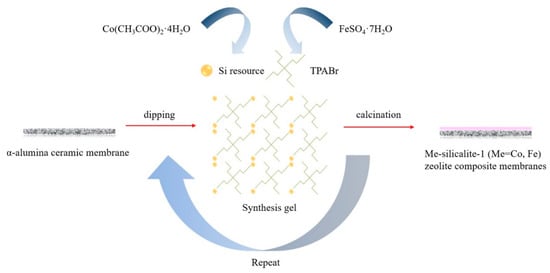 Fabrication procedures of the Me-silicalite-1 (Me = Co and Fe) zeolite composite membranes.