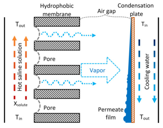 36. Kalla, S.; Upadhyaya, S.; Singh, K. Principles and advancements of air gap membrane distillation. Rev. Chem. Eng. 2019, 35, 817–859. [Google Scholar] [CrossRef]