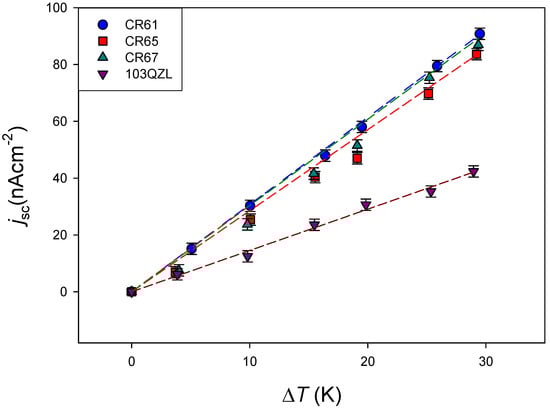 4.2. Short-Circuit Current Density vs. Temperature Difference