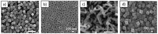 TiO2 nanostructured surfaces: (a) microbeads, (b) nanotubes, (c) nanowires and (d) octahedral nanoparticles. Partially reprinted (a,c) by permission from Springer Nature: Springer Protoplasma [51] (2016).