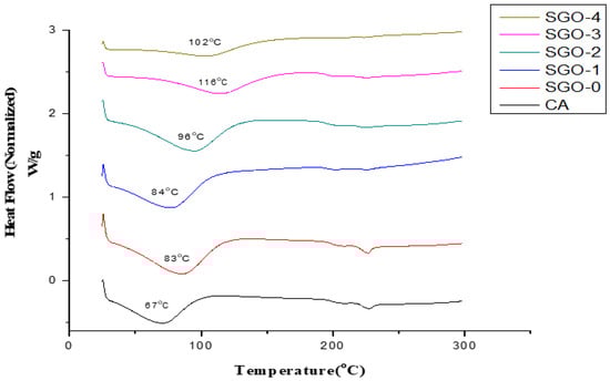 Thermal analysis of CA and CA-SGO composite membranes through DSC.