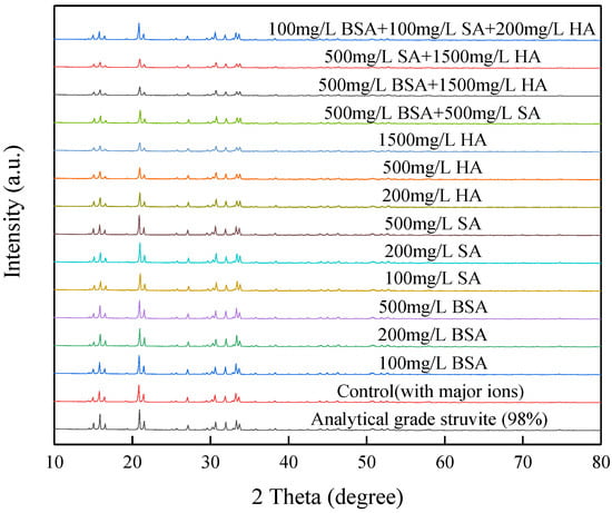 3.2. Effect of Organic Substances on Struvite Electrochemical Precipitation Performance