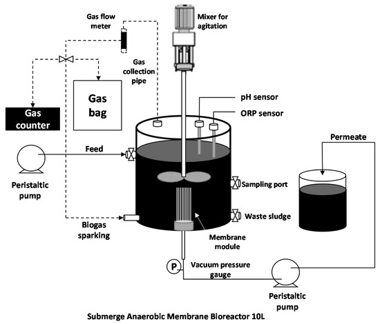 A diagram of the lab-scale submerged anaerobic membrane bioreactor (AnMBR).