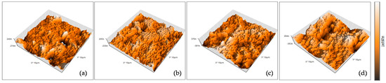 AFM image of the (a) virgin membrane, (b) fouled membrane in period I, (c) fouled membrane in period II, and (d) fouled membrane in period III.