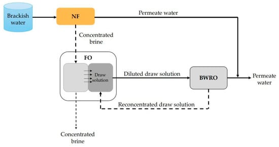 - Altaee, A.; Hilal, N. High recovery rate NF-FO-RO hybrid system for inland brackish water treatment. Desalination 2015, 363, 19–25. [Google Scholar] [CrossRef]