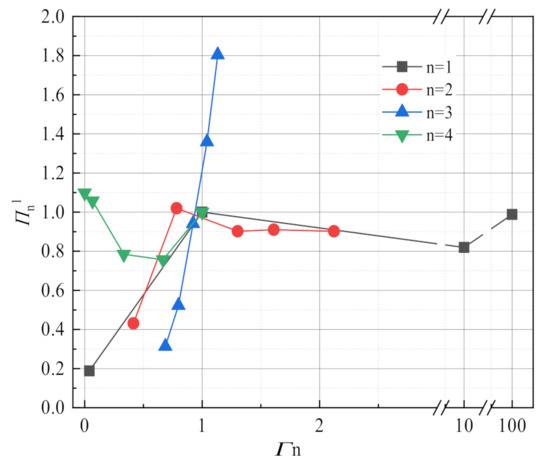 This experiment focuses on the effects of flue gas temperature, flue gas flow, negative pressure airflow and membrane pore size on flue gas water and waste heat recovery characteristics, but flue gas water recovery characteristics and waste heat recovery characteristics have different sensitivity to fluctuations of different factors. Taking membrane pore size 10 nm, flue gas flow 10.33 L/min, flue gas inlet temperature 56.31 °C, negative pressure airflow 15 L/min as the reference operating conditions, Figure 20 shows the change of the dimensionless dependent variables of the flue gas water recovery characteristics with the dimensionless independent variables of different factors. In addition to the 0.4 nm membrane pore size, it can be see that the sensitivity of flue gas water recovery characteristics to different factors in descending order is flue gas inlet temperature, negative airflow, flue gas flow, and membrane pore size. In addition, taking a membrane pore size of 10 nm, flue gas flow 10.33 L/min, flue gas inlet temperature 56.31 °C, negative pressure airflow 15 L/min as reference conditions, Figure 21 shows the change of the dimensionless dependent variables of the flue gas waste heat recovery characteristics with the dimensionless independent variables of different factors, which is different from the water recovery characteristics of flue gas. In addition to the 0.4 nm membrane pore size, it can be seen that the sensitivity of flue gas waste heat recovery to different factors in descending order is flue gas inlet temperature, flue gas flow, negative pressure airflow, and membrane pore size.
