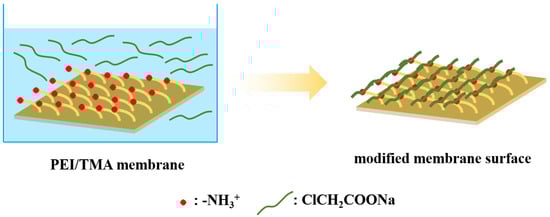The process of ClCH2COONa modifying a PEI/TMA membrane.