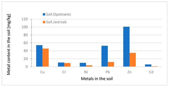 Total metal content in the soil from Opatowiec and Jastrzab (mg/kg d.m.).