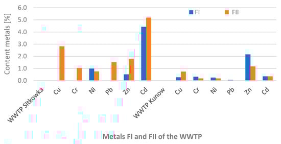 Percentage % of metals in the FI and FII fractions of the sludge of WWTP Sitkowka and WWTP Kunow in relation to the Polish standard [9].