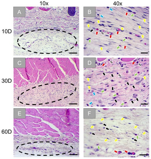 - Barbeck, M.; Lorenz, J.; Holthaus, M.G.; Raetscho, N.; Kubesch, A.; Booms, P.; Sader, R.; Kirkpatrick, C.J.; Ghanaati, S. Porcine Dermis and Pericardium-Based, Non–Cross-Linked Materials Induce Multinucleated Giant Cells After Their In Vivo Implantation: A Physiological Reaction? J. Oral Implant. 2015, 41, e267–e281. [Google Scholar] [CrossRef]