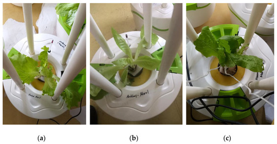 The images of lettuces irrigated with (a) tap water, (b) PECM treated wastewater, (c) BTTWW.