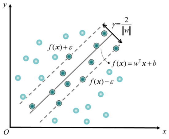 Combined with the rationale of SVR as shown in Figure 3, the solution of the SVR model would be achieved by constructing the Lagrange equation and solving its partial derivative [13]. The Equation (4) could be written in the explicit form: