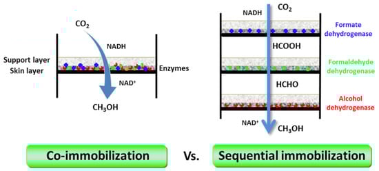 Enzyme membrane reactor setup for the production of methanol from CO2: co-immobilization versus sequential immobilization of enzymes in membranes [].