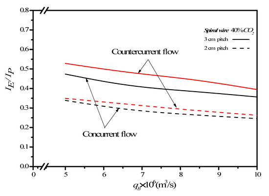 Effects of spiral-wire pitches and CO2 concentration on . (a) Concurrent-flow operations; (b) Countercurrent-flow operations.