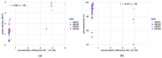 The presence of multivalent ions like Mg2+ in natural waters reduces the power output of RED as they are transported against their concentration gradient, a phenomenon know as uphill transport [82,83,84,85]. Therefore, efforts have been made to prepare membranes with high selectivity for monovalent ions, both concerning AEMs [86,87] and CEMs [76,88,89].