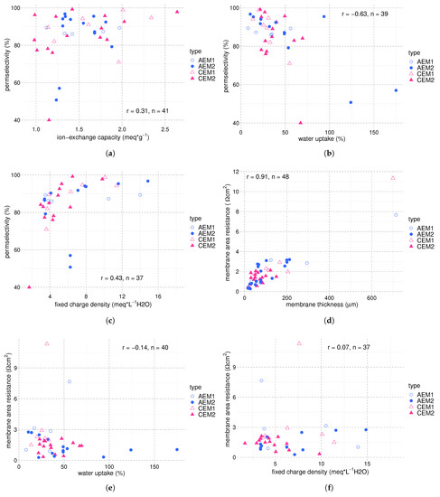 - Geise, G.M.; Hickner, M.A.; Logan, B.E. Ionic resistance and permselectivity tradeoffs in anion exchange membranes. Acs Appl. Mater. Interfaces 2013, 5, 10294–10301. [Google Scholar] [CrossRef]