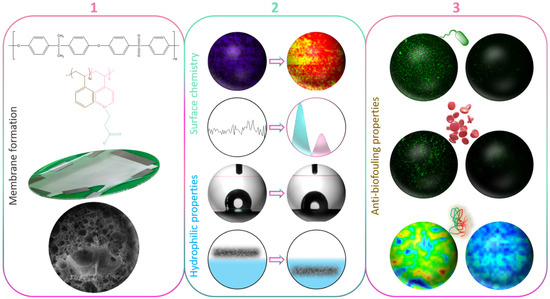 However, the intrinsic hydrophobicity of polysulfone makes PSf membranes prone to fouling. In particular, biofouling can readily occur when the membranes come into contact with an aqueous environment. Thus, polysulfone membranes used in wastewater treatment, blood filtration, or any environment containing proteins, micro-organisms, or cells have to undergo a modification procedure in order to improve their water permeability and/or reduce their interactions with biofoulants [12].