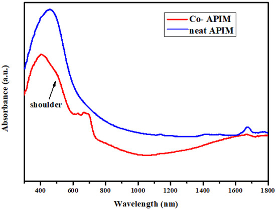The color of APIM makes no significantly different with and without chelated Co ions. However, their UV–Vis spectra in Figure 2 demonstrated additional λmax around 692 nm after complexing with Co ions and the peak that originally belongs to neat APIM (458 nm) blue-shift to 406 nm, revealing the coordination complexation between the nitrogen of APIM and Co ions did occur. The entire process is depicted in Scheme 1. The presence of the right shoulder peak of λmax at 406 nm means not all APIMs are coordinated with Co ions and remain in the un-doping state (neat). Since no significant gelation phenomenon occurs after Co ion chelation, most of the coordination complexation is considered to be intramolecular (Scheme 1) instead of intermolecular.