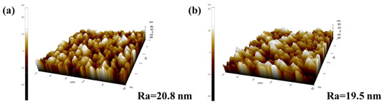 Atomic force microscope (AFM) images of the α-Al2O3 membrane (a) before and (b) after modification.