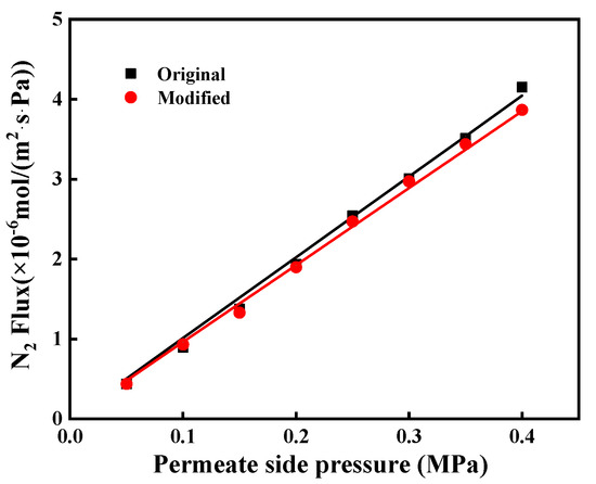 The N2 flux of the ceramic membrane before and after modification.