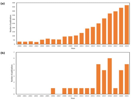 Number of publications on (a) ‘membrane distillation’, and (b) pilot scale MD studies between 2000 and 2020 (Scopus).