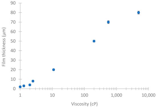 Influence of the viscosity of the PDMS polymer solution on the film thickness.